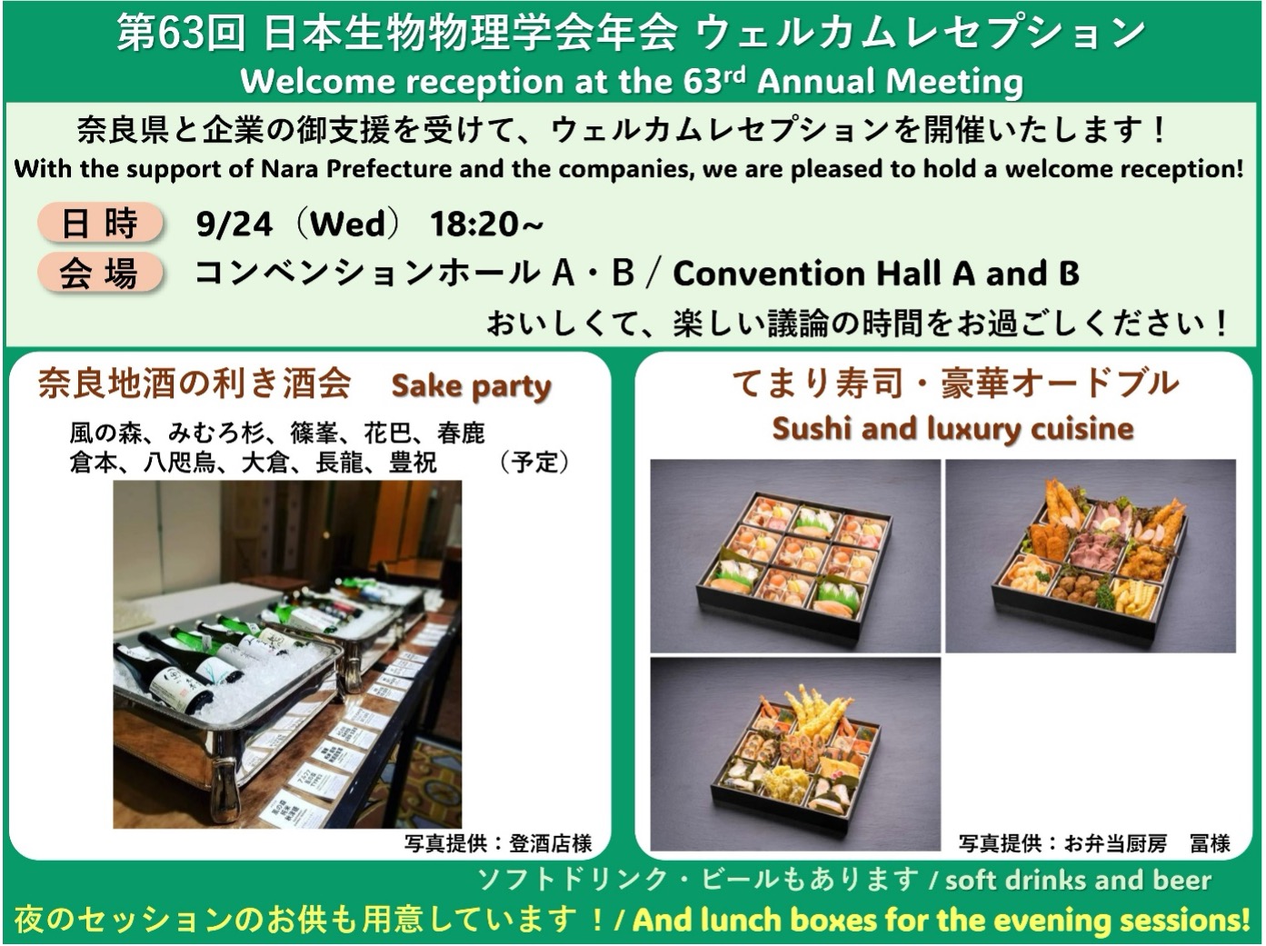 ウェルカムレセプション 奈良の地酒を楽しみながら議論を深めていただければ嬉しいです。おつまみや、夜のセッション参加のための軽食も用意いたします。ミニシンポジウム、イブニングセッションの会場に軽食を持参することもできます。ぜひお立ち寄りください。 ※協賛企業、奈良県ビジターズビューローの支援による飲料、食事を提供しております。