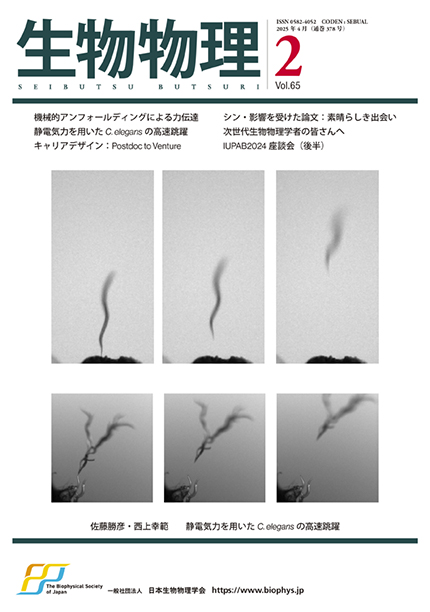 「生物物理」は1960年代から続く伝統ある日本の生物物理学会誌です。幅広い生物物理学をわかりやすく解説した記事を中心に日本と世界の生物物理学に関係する記事を掲載しています。生物物理学会の会員は「生物物理」誌へ投稿ができます。記事や特集号の提案もできます。投稿・提案は学会員の大切な権利です。積極的な投稿・提案をお待ちしております。詳しくは「投稿規程」をご覧ください。