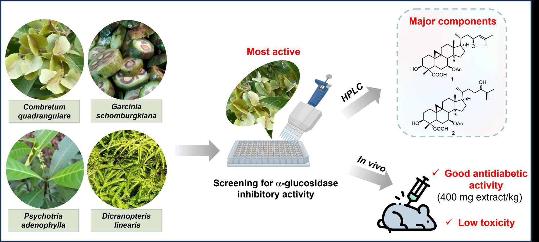 Regular Article Comparative study of alpha-glucosidase inhibition of four Vietnamese medicinal plants Combretum quadrangulare, Dicranopteris linearis, Psychotria adenophylla, and Garcinia schomburgkiana: In vitro and in vivo studies Thi-Hong-Tuoi Do, Thuc-Huy Duong, Huu-Hung Nguyen, Thanh-Sang Vo, Ngoc-Hong Nguyen, Huong Thuy Le DOIhttps://doi.org/10.2142/biophysico.bppb-v21.0027 ReceivedJuly 23, 2024 AcceptedDecember 09, 2024 ReleasedDecember 13, 2024 |
